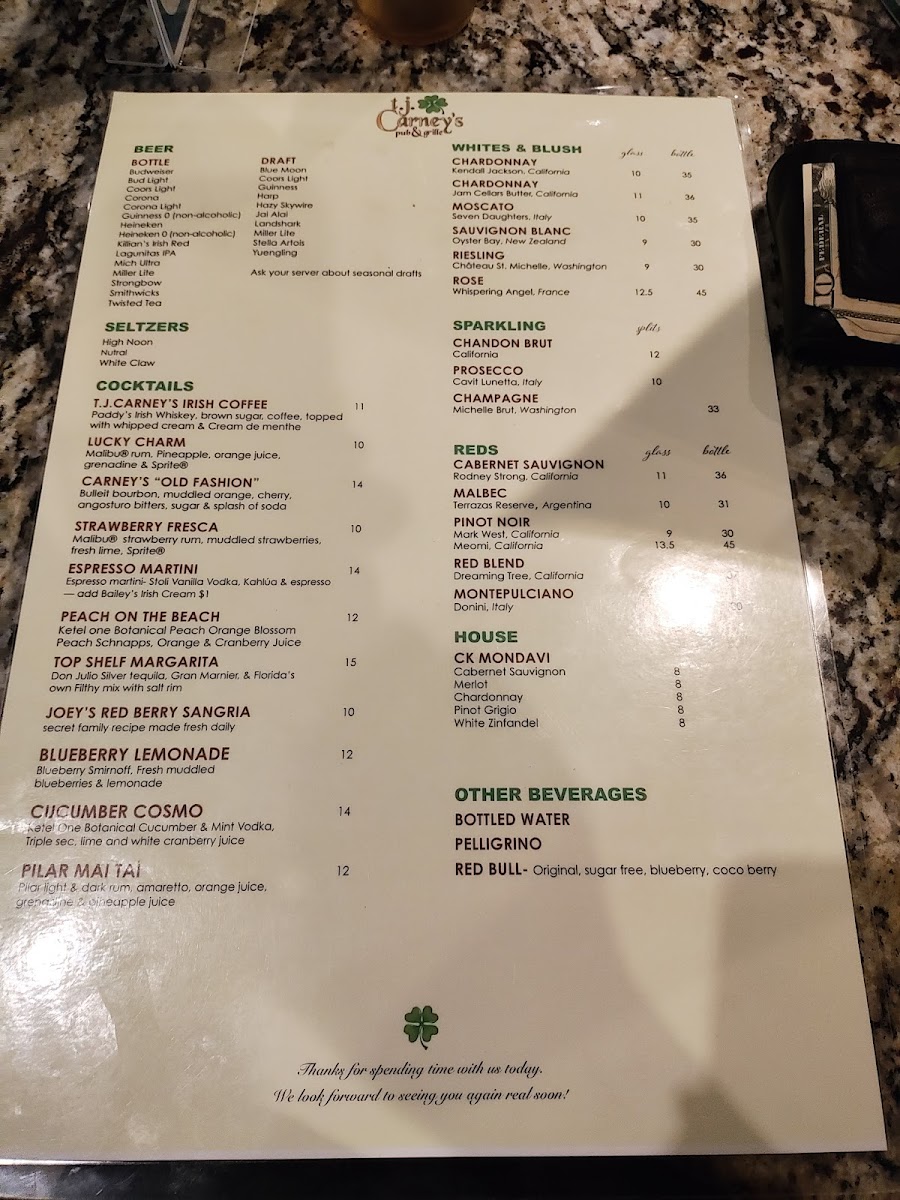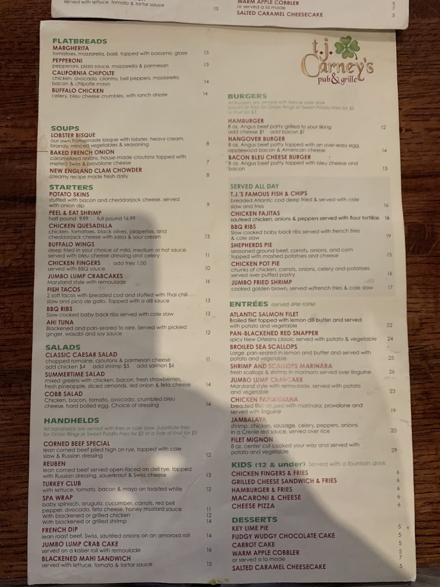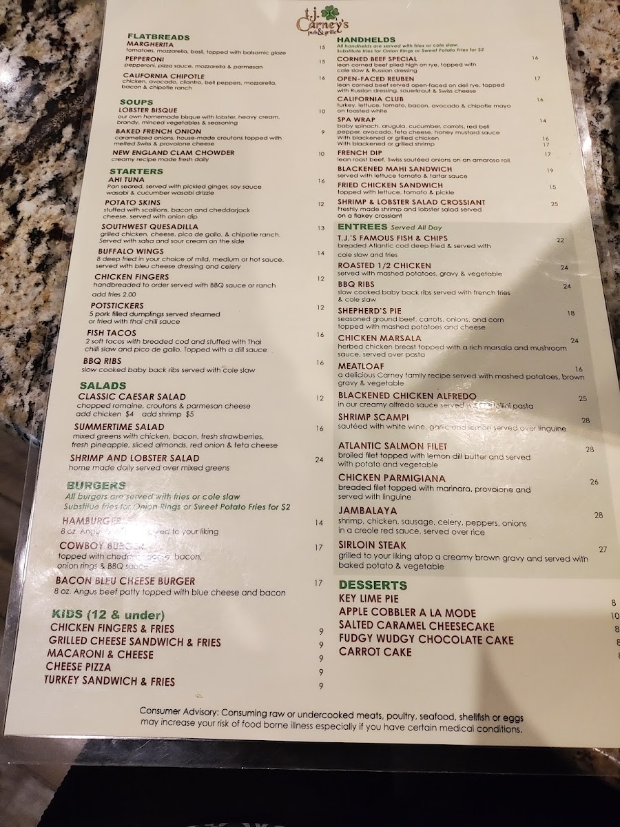 With a diverse menu, friendly service, and a lively ambiance, T J Carney's is a must-visit for food lovers looking to enjoy a memorable dining experience.
